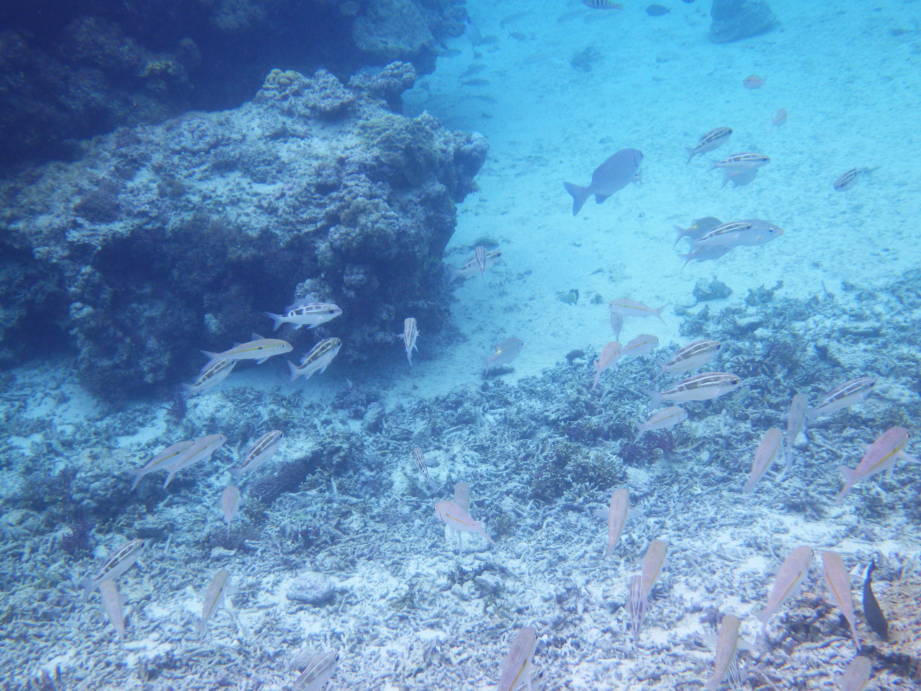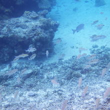 丸吉食堂でランチ後に伺いました。台風が近づいていて海が荒れ気味でしたがここは波がほとんどなく皆さんシュノーケリングを楽しんでいたので試してみました。ちょっと海に入っただけでサンゴも魚もたくさん見られてとても楽しかったです。