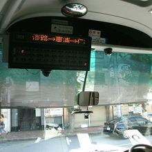 場所が狭いので、10分ぐらい前に行き先と出発時間を告げる放送と表示装置が出てからしかバスに乗れないシステムを採用していますので、それまで待合室で待つことになります。トイレや飲み物の自販機は待合室にあります。