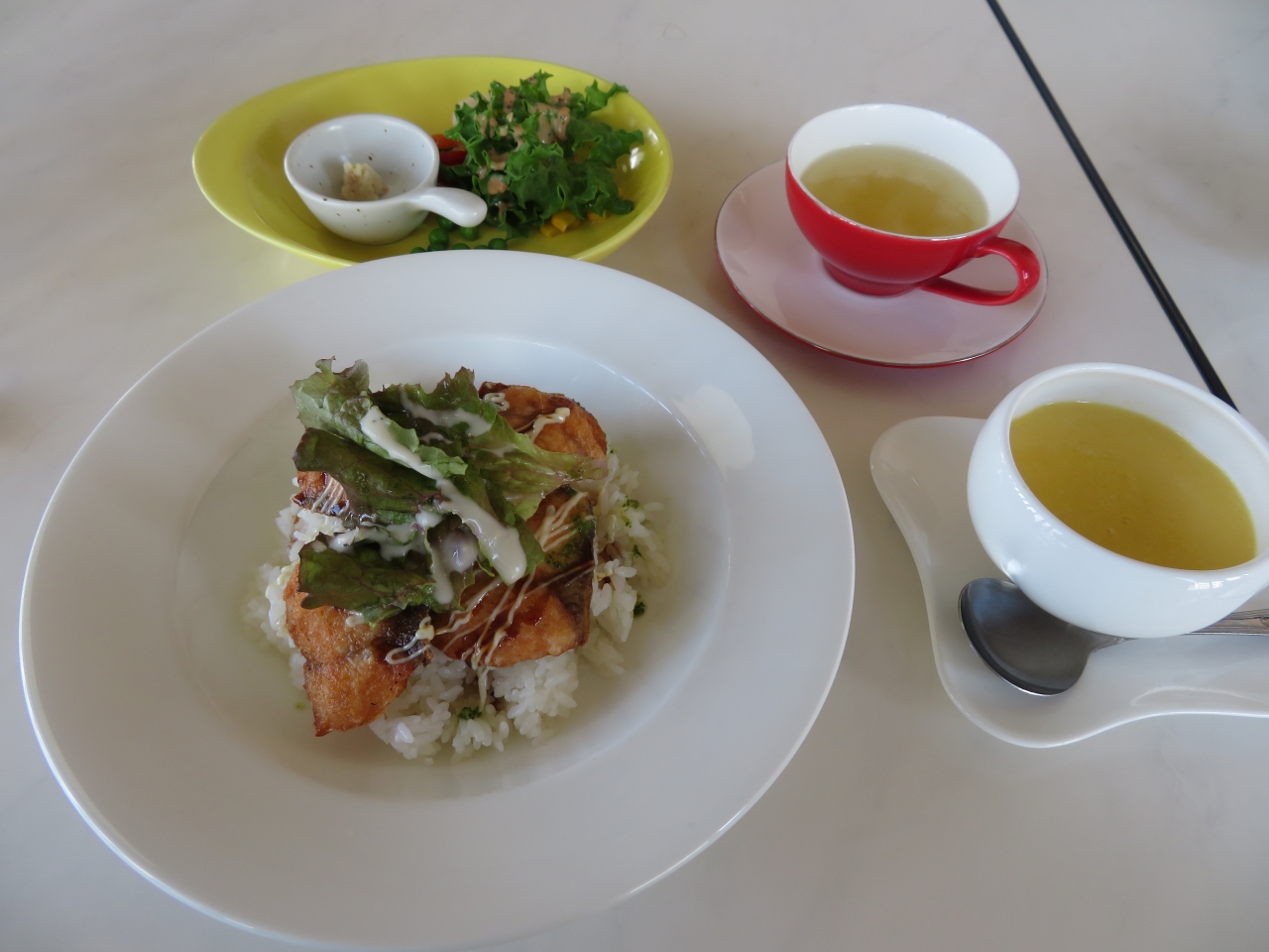 このお店のザンギ丼は、イタリアンレストランらしくバジルソースやマヨネーズを味付けに使ったもの。洋風にデコレートされたザンギ揚げがご飯に乗っていました。