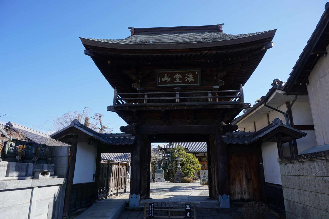 ただ、まず目を引くのは楼門。二層目に高欄が周り、花頭窓付の堂々とした構え。上田市の指定文化財ともなっています。一方の本堂は意外に大人しめ。屋根もちょっと低いように見えました。