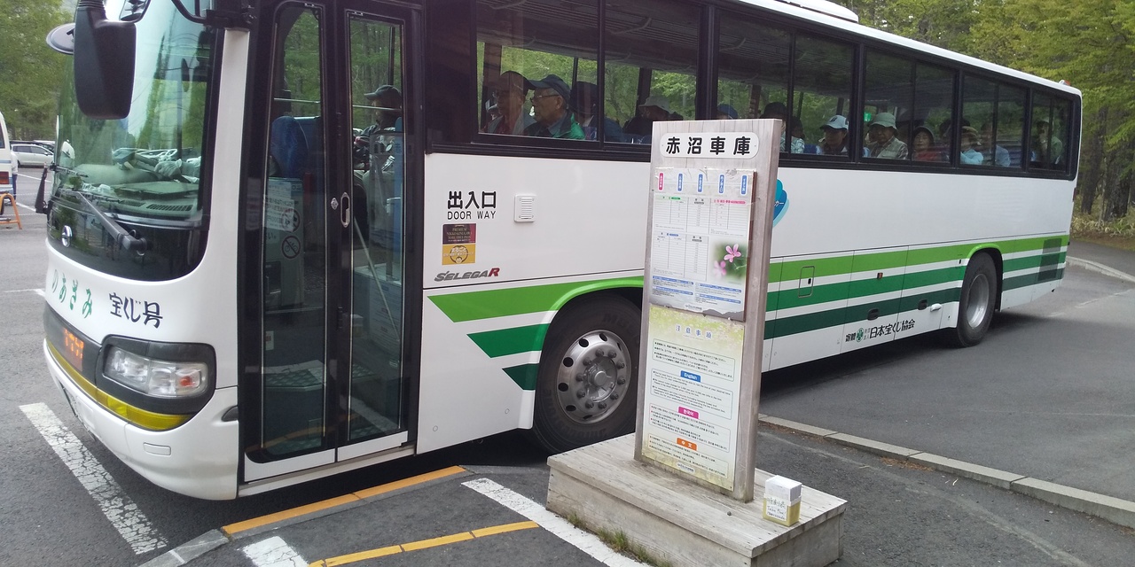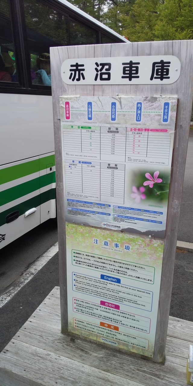 戦場ケ原へハイキングする方の駐車場として、また小田代原や千手が浜方面へ運行する低公害バス乗り場「赤沼車庫」のバス停はセンターの目の前です。