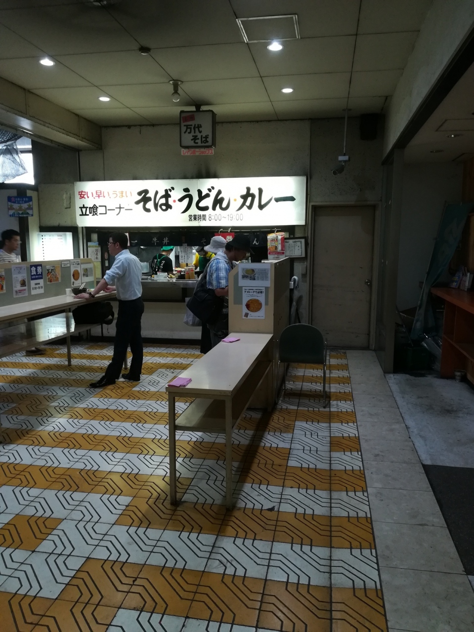 万代バスターミナルにある立ち食いの蕎麦屋さんです。カレーライスが評判でテレビでも紹介されたそうです。普通盛り480円でなかなかボリュームが有ります(大盛りや小盛りもありました)。懐かしの黄色い色をしたカレー、少しピリ辛ですか甘みもあり美味しかったです。