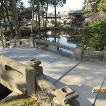 苔が生えそうな石橋で左右の池がつながれて、優雅な雰囲気をか持ち出しております。