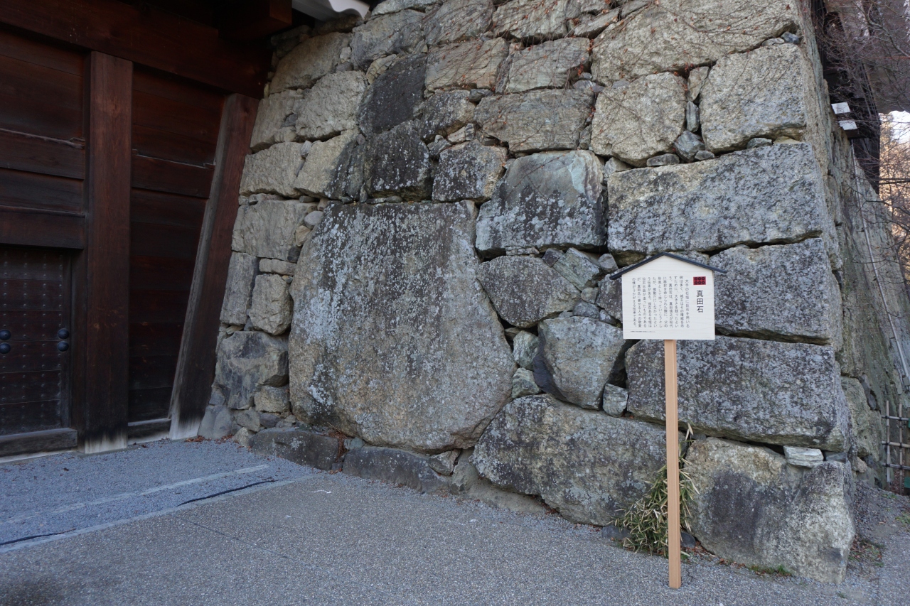 真田石は、本丸の入口手前。右手の石垣に使われた石です。石垣の石の中では群を抜いて大きくて、高さ 約2.5m、横3m。真田昌幸が上田城を築く際使った石なので、息子の真田信之が松代へ移る時、この石を父の形見に持って行こうとしたが、あまりにも大きく動かせなかったということ。しかし、大阪城や江戸城の大きな石を見てしまうと正直この大きさでは驚かない。まあ、ほどほどというところかと思います。