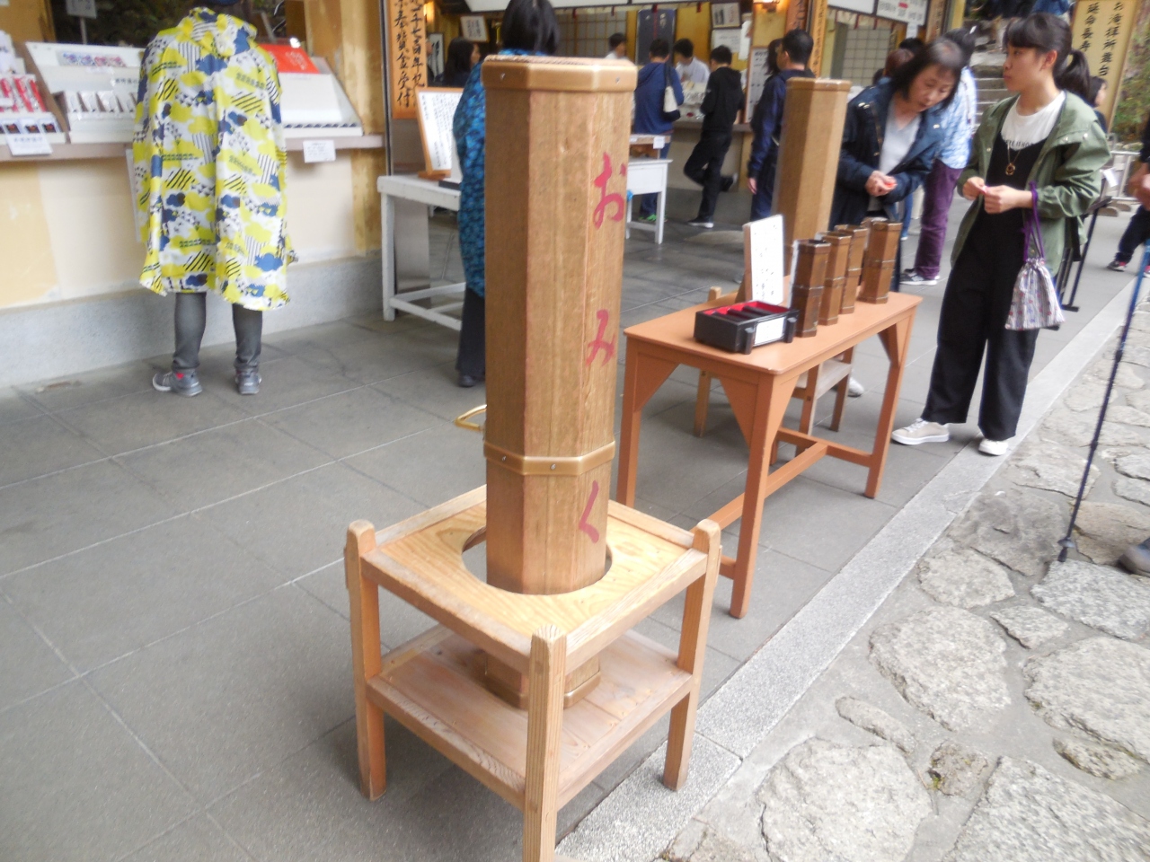 拝殿などは余り大きくはありませんが、那智の滝の滝壺近くにある神社で、那智の滝を見ながら参拝することが出来ます。人が抱きかかえながら振り中から番号が出てくるおみくじがあり、四苦八苦して振っているその様子はかなり滑稽です。