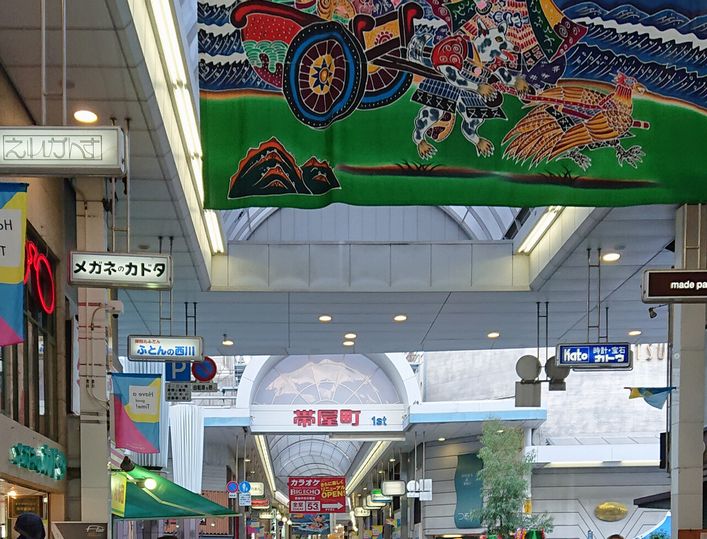 帯屋町一丁目商店街にあるホテルに宿泊しました。観光客や地元の方など、人通りが多く賑わっていました。行列ができているお店も多かったです。アーケードがあり天気に左右されずに移動できるのがいいですし、道幅も広く明るい商店街でした。