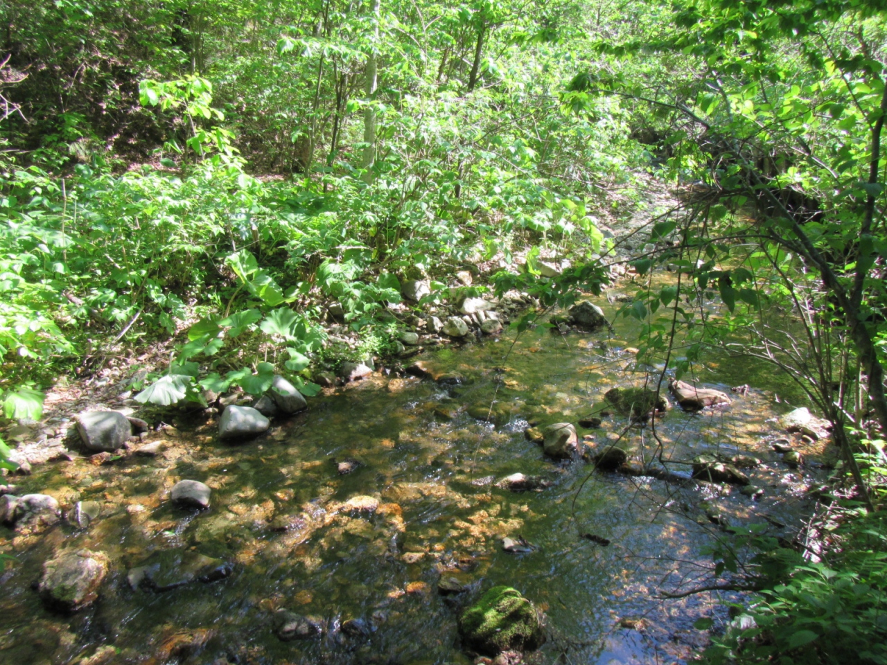 5月下旬に訪れると、緑の中に少しですがツツジが見られます。
