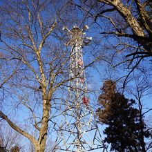 たくさんのスピーカーが付いている鉄塔