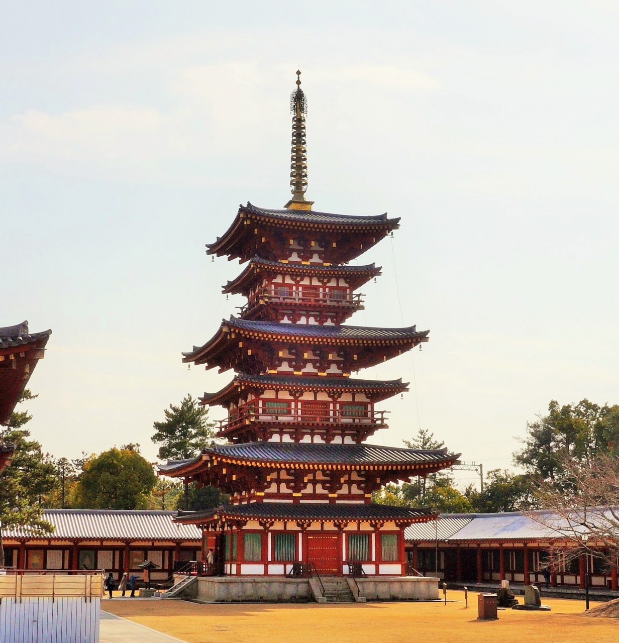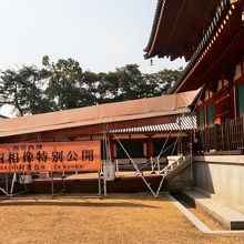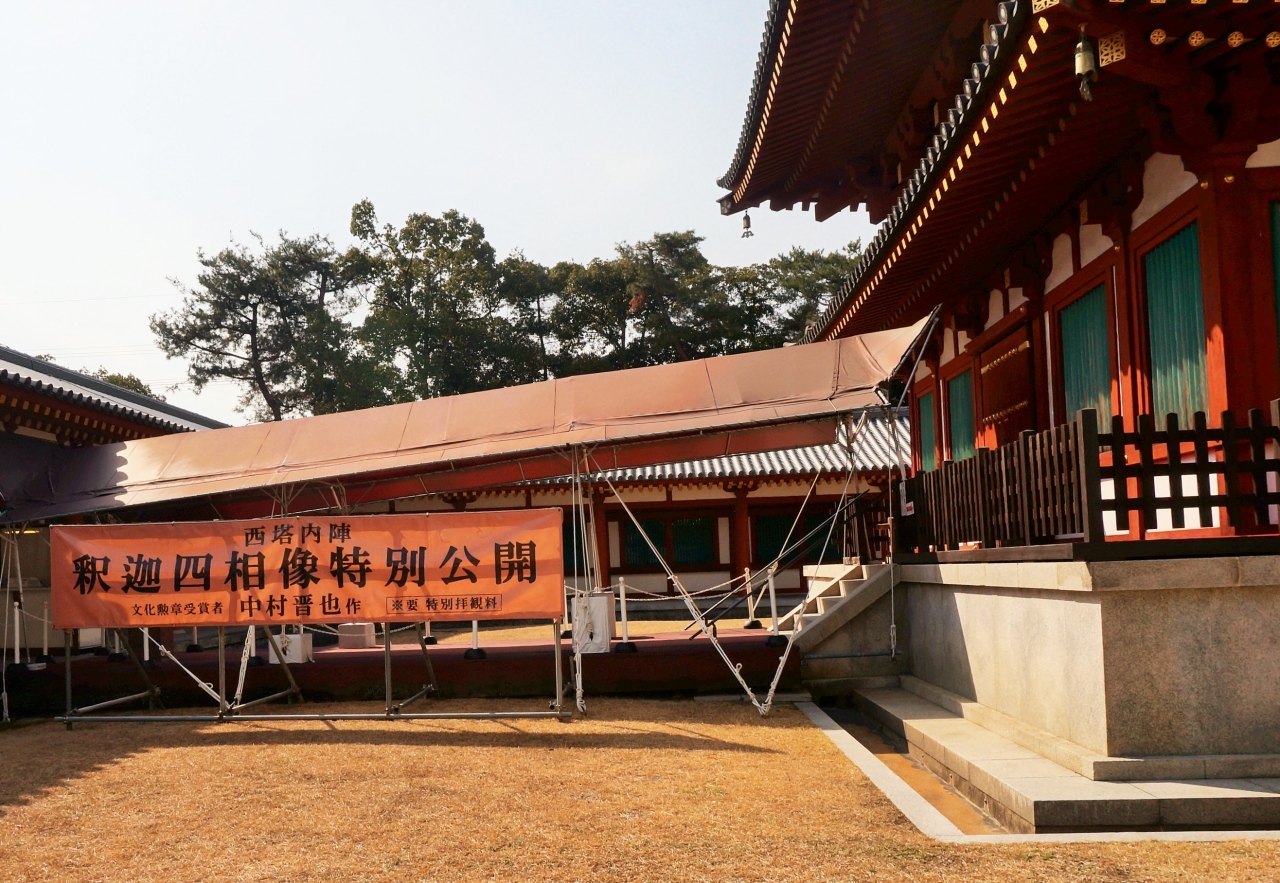 落ち着いた雰囲気の国宝東塔に対し、鮮やかな色彩でとても美しいですね。