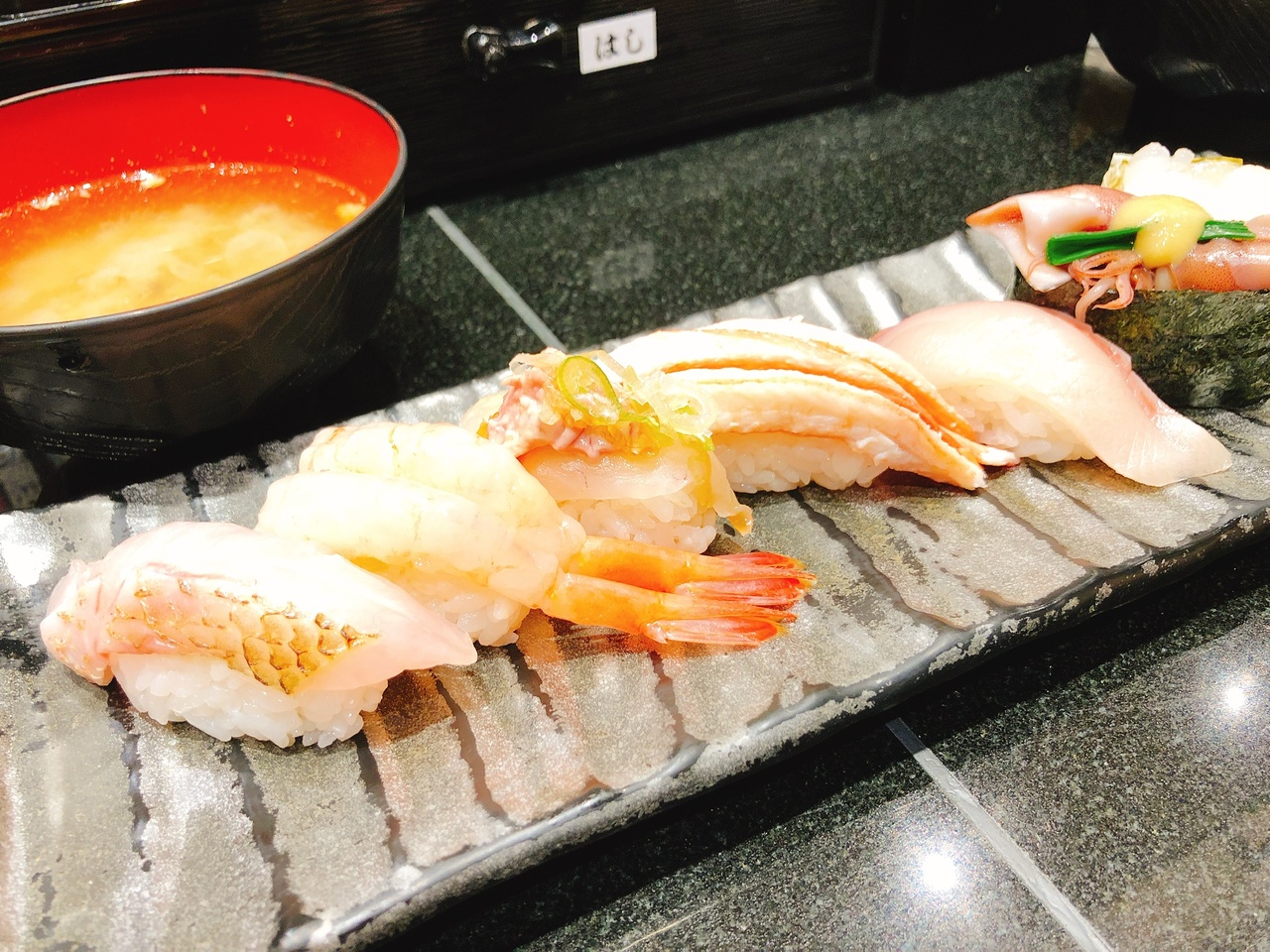 時間が無くても一人前の量が食べられなくても富山に来たらお寿司は食べなくちゃですね。お昼時はセルフサービスのお味噌汁が飲み放題でした。