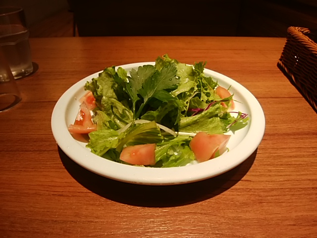 サラダが先に、少ししてステーキ登場。ステーキの上ってバターのってる割合多いですね。赤身のお肉をがっつり。リーフサラダは上品サイズ。そして、ステーキはガッツリサイズ。いきなりステーキよりも、落ち着いて食べれるかな。