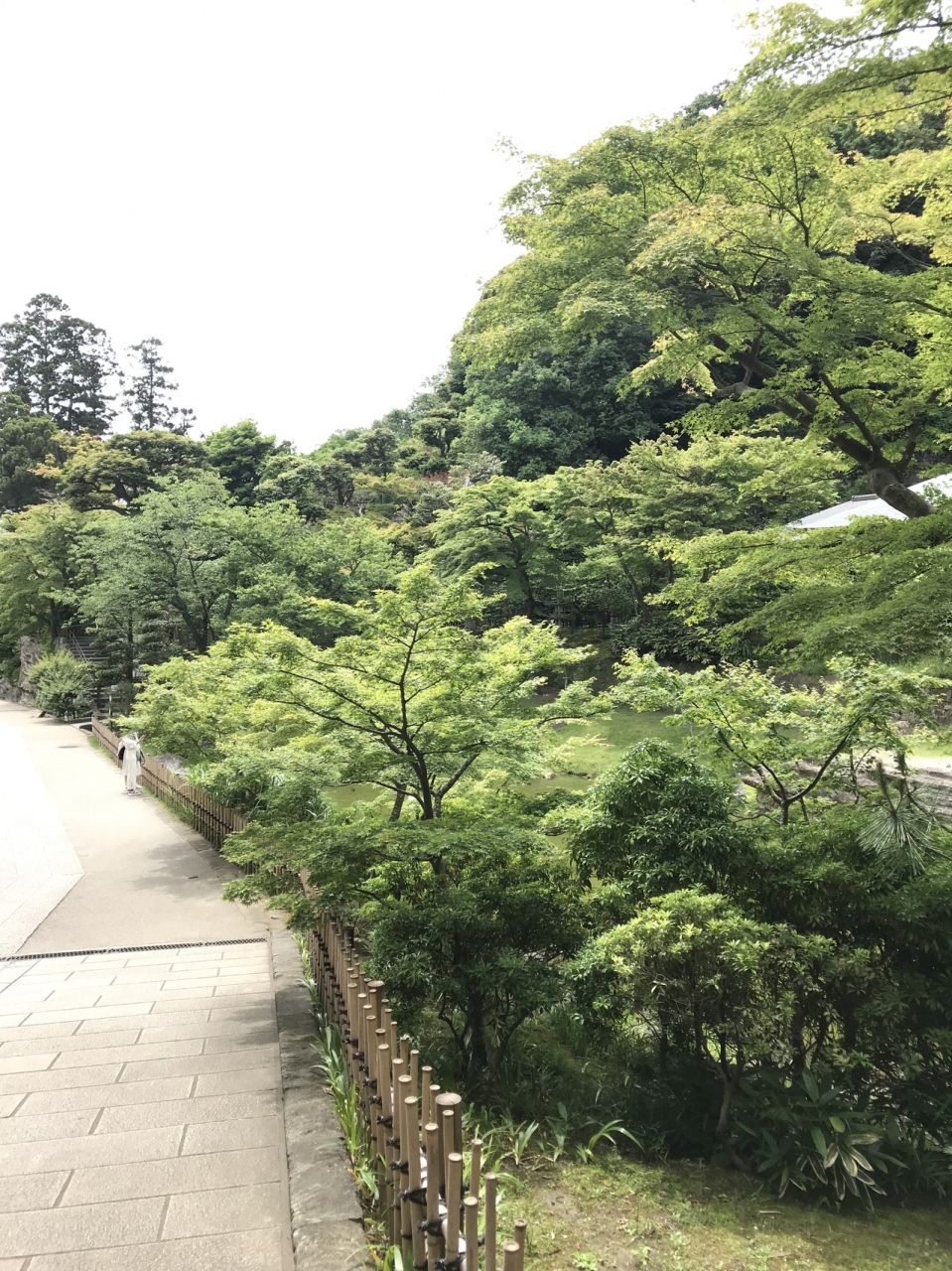 新緑の美しい季節でしたので、境内のお庭を十分楽しませていただきました。妙香池では、大きな亀が石の上でじっとしていたので、亀もじっくり見ることができました。