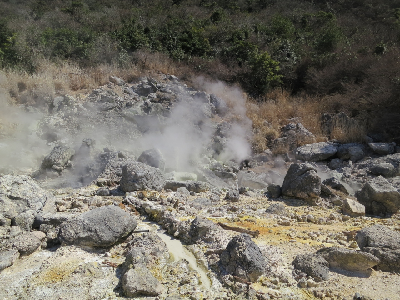 車を降りた瞬間から、硫黄のにおいと白い噴煙が立ち込めます。遊歩道が整備されており、雲仙地獄のまわりを歩けます。途中にベンチもあり、温泉卵をいただきました。20年以上前にここに来たときはもっと混雑していた記憶があるのですが、今回訪れたときは観光客は少なかったように思います。