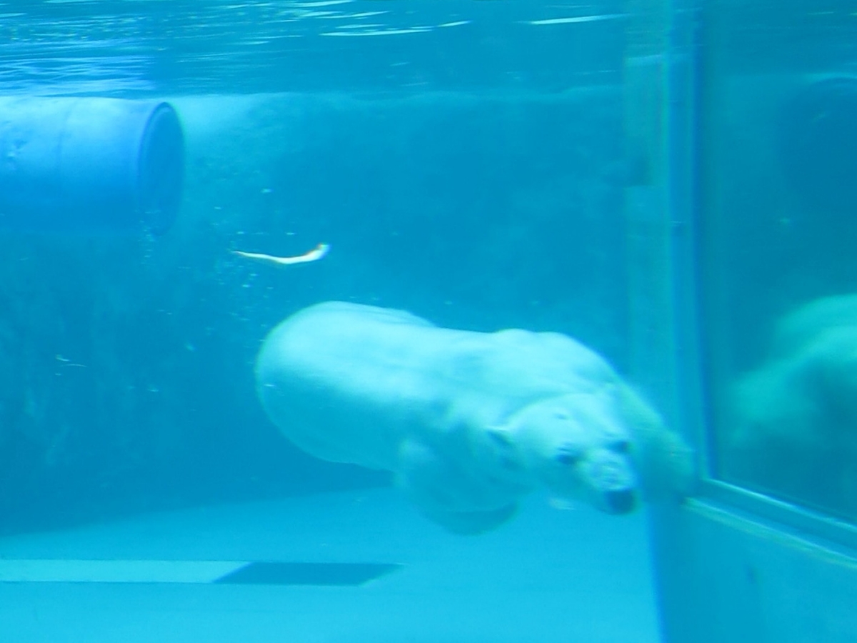 実際、大きなプールもあり、それを側面から見る=泳ぐ姿を真横から見るという面白い体験ができます。