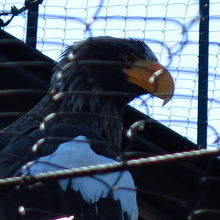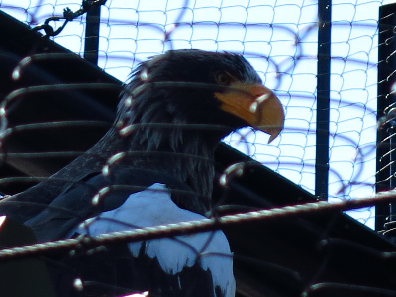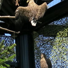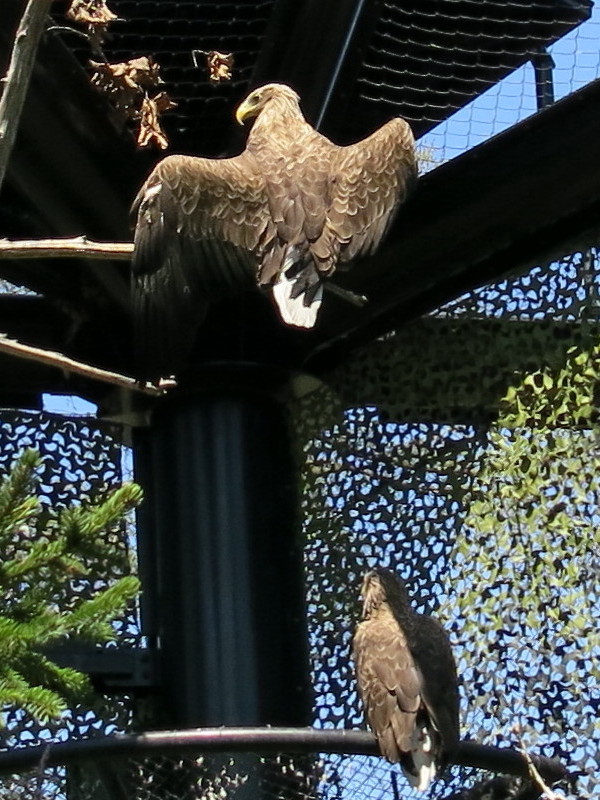 オオオワシ、オジロワシ、クマタカが大きなゲージに入っています。
