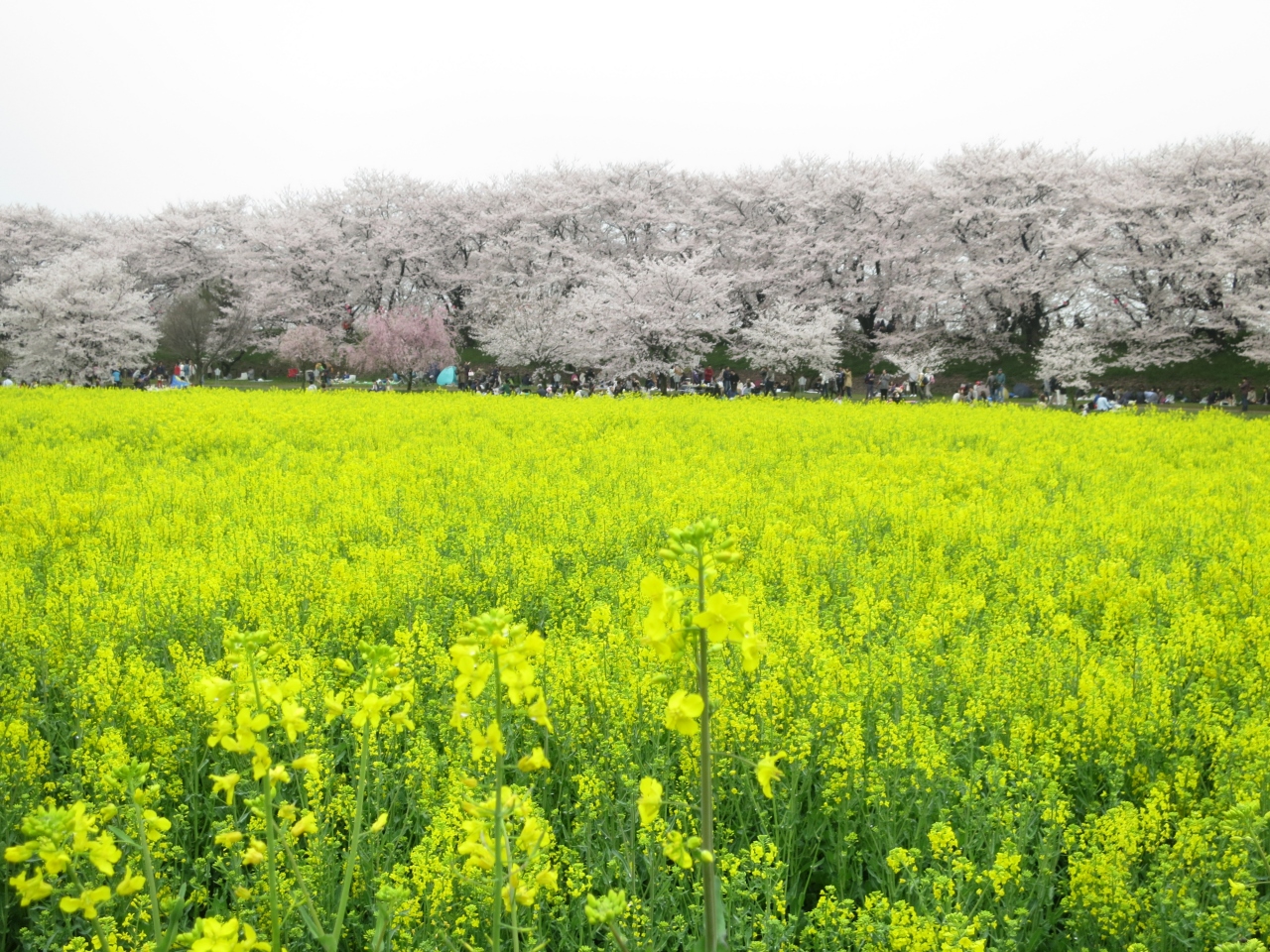 有名な桜の名所です。混みそうだったので駅からのバスを利用しましたが、道路が混んでいていなかなか着きませんでした。ちょうど見頃で、桜のピンクと菜の花の黄色のコラボレーションがとてもきれいでした。晴れていれば、空の青色も加わりよりキレイなんだろうなと思いました。
