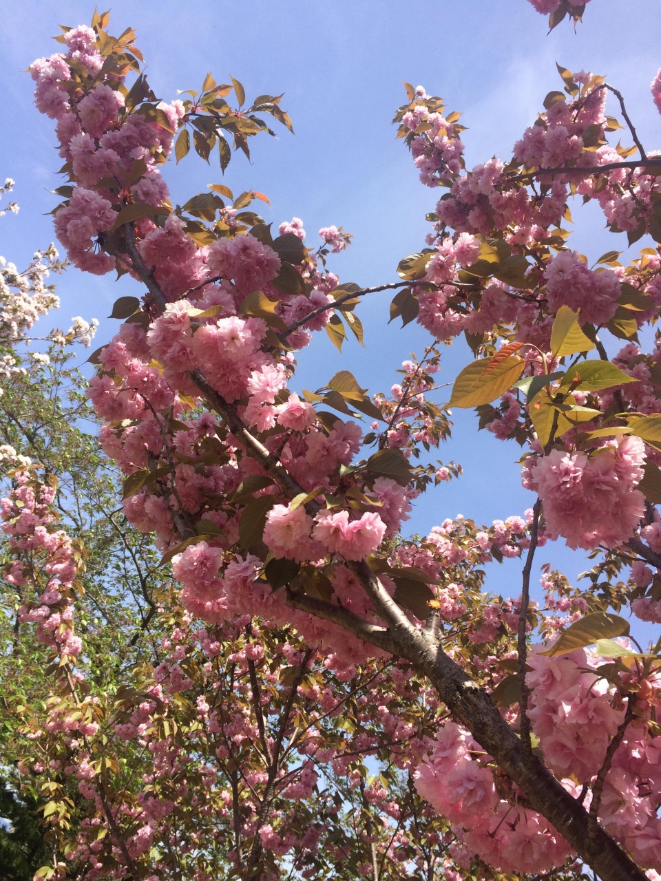 八重桜やボタン、つつじなど様々なお花が咲いており、一般的な桜の見ごろが過ぎた時期でもお花見を楽しめます。山道ではありますが、いたるところに花が咲いているのでのんびりと花見をしながら山頂まで登ることができました。これが個人の所有地で、一般公開していただけているのがありがたいです。