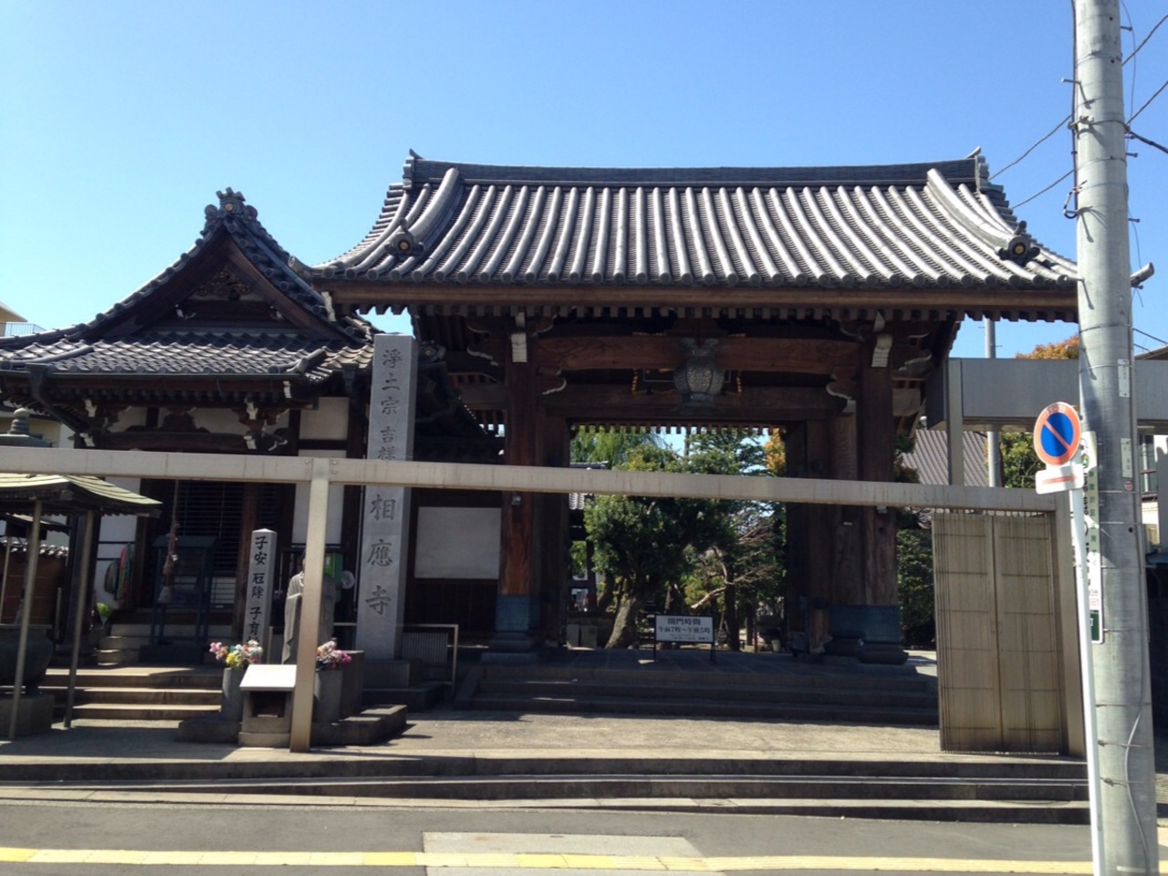 大口1番街を歩いていたらお寺がありました。山門の前に壁の骨組みみたいなのがあって道路の対面からの見栄えが残念でした。