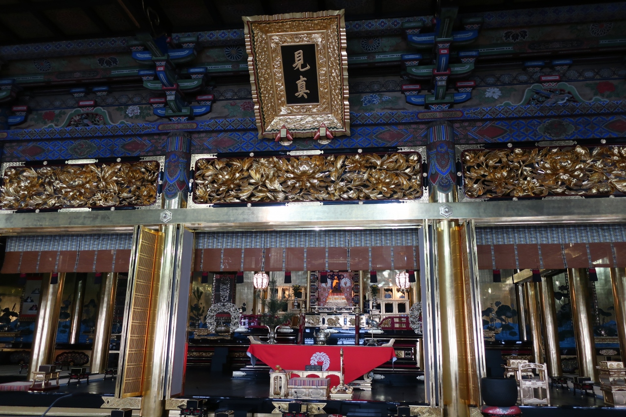 特に御影堂、如来堂はその建物の大きさも本願寺並の大きさがあり、内部も大空間、金箔で装飾された宮殿、精緻な彫刻が施された欄間など見所満載です。