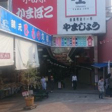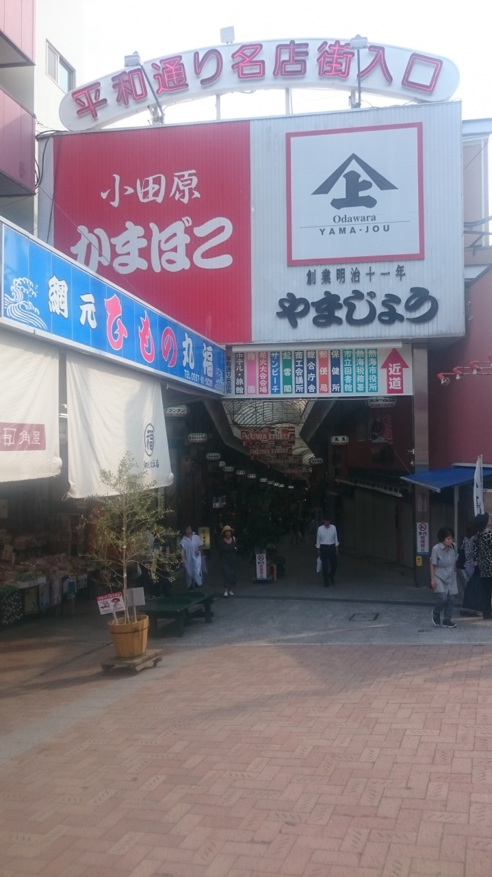 熱海駅を右手に行くと平和通り商店街があります。通りは坂道(下り)ですが歩行者専用道になっており、休憩用のベンチもあります。お店は干物店が多くあり、なんと言っても金目鯛の干物が目を引きます。(さすがに高い)かますの干物も美味しそう!