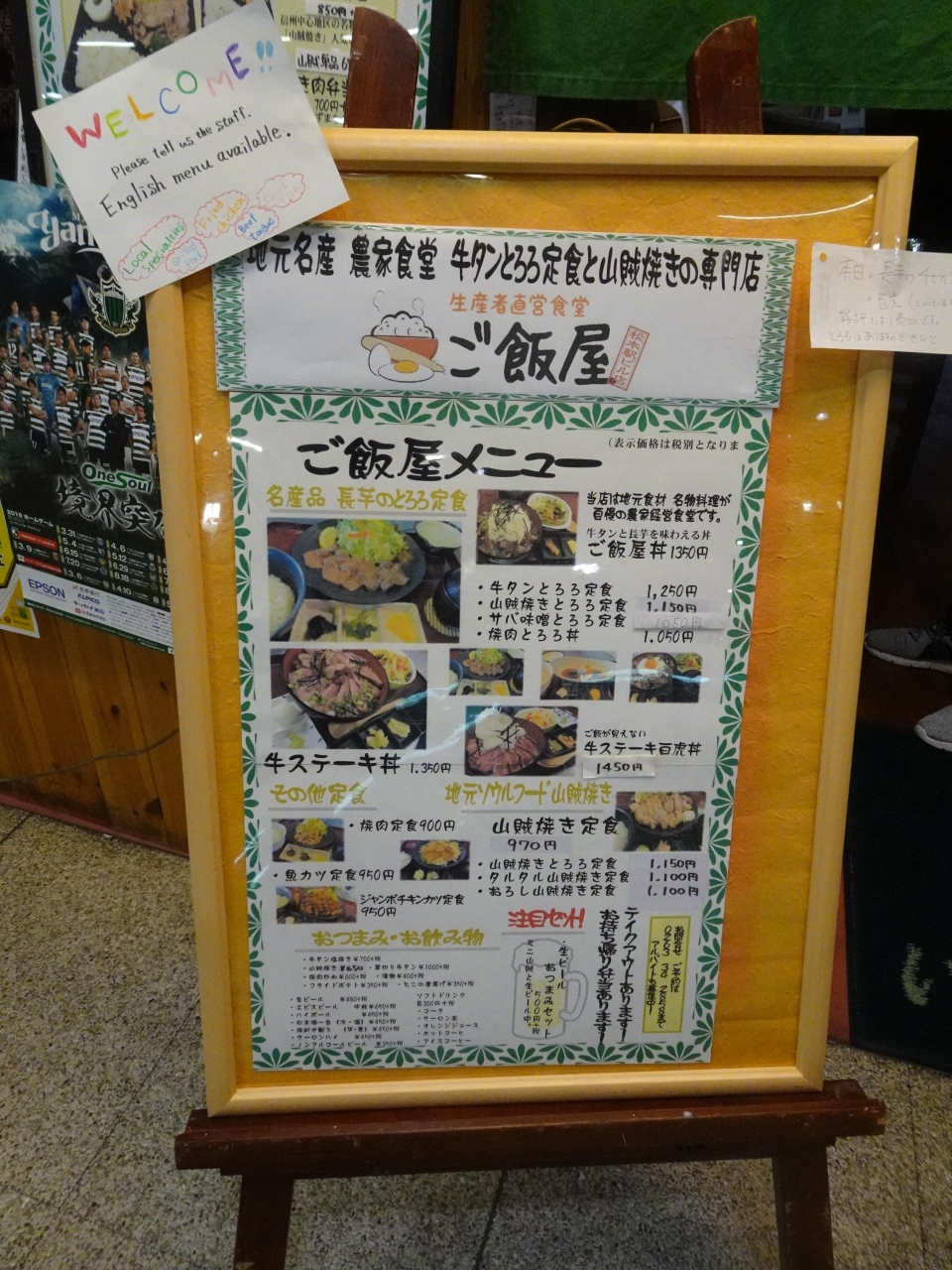 運営している企業は自社農場で長芋を生産しているようで、とろろの料理が名物とのこと。私はねばねば系の食材はダメなので「おろし山賊焼き定食」をオーダー。ボリュームたっぷりながら、さっぱりした味わいで満足。