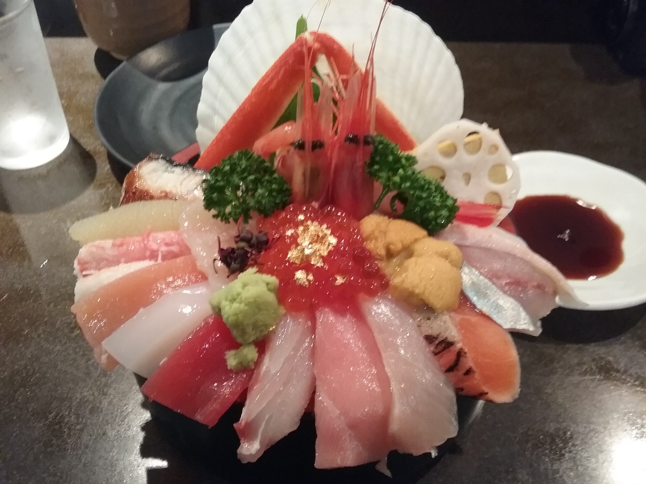タクシーの運転手さんに近江市場で美味しいお店を聞いたら2~3軒教えていただきました。その中で、早朝から開店しているこちらへ朝8時に伺いました。一番安いメニューで1400円~のお寿司がありますが、何と言ってもこちらの名物は海鮮丼3000円。お刺身が今にも溢れそうな感じにキレイに並んでいます。ネタも美味しかったし、色々なお魚を食べられて飽きることがありません。お酒も良心的なお値段でした。オススメです!