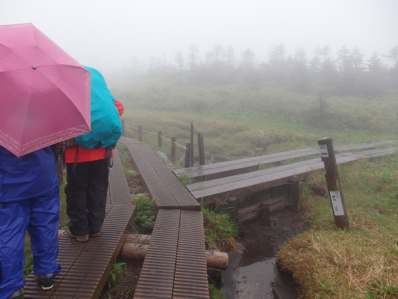 盛岡駅から八幡平自然散策バスで1時間50分、八幡平頂上バス停に着きました。バス停を出発し、八幡平山頂、源太分れ分岐等遊歩道を歩いて八幡平頂上バス停に戻りました。さすが花の百名山の一山、キヌガサソウ、ヒメシャクナゲ、水芭蕉、ワタスゲ、シラネアオイ、ハクサンチドリ等20種以上の野花を見ることができました。全て見たことのある花でしたが、久しぶりに見たキヌガサソウに感激しました。生憎の雨のために、黒谷地湿原に行かなかったのですが、行ったらもっと多くの花が見られたでしょう。来年リベンジの予定です