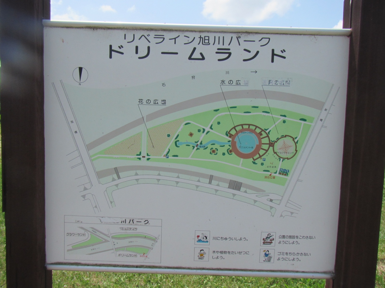 旭橋前後の石狩川河川敷に整備された公園で、草地の広場、噴水などがあって、近くの常盤公園とともに旭川市民の憩いの場になっています。