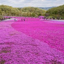 ピンク色の芝ざくらが地面一面に咲いていてとても綺麗でした。