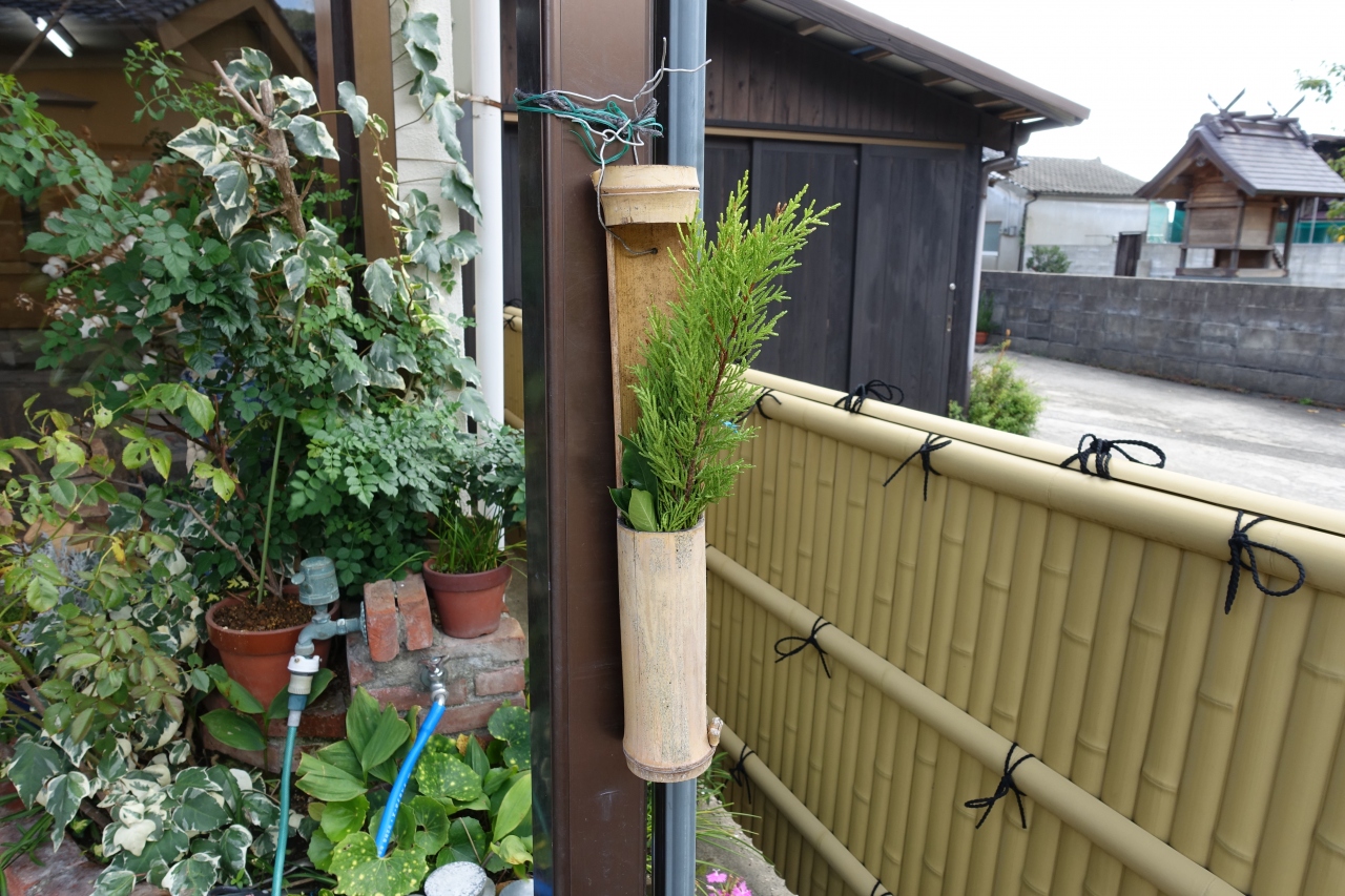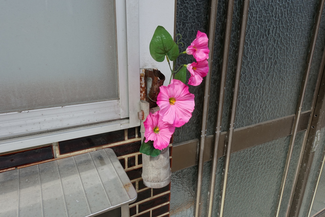 沿道では、竹筒に花を活けて玄関先に飾ってある家がちらほら見られます。お通りになる神様をおもてなしする意味なのでしょうか。中には造花だったりもしますが、暑い季節は仕方ありませんね。