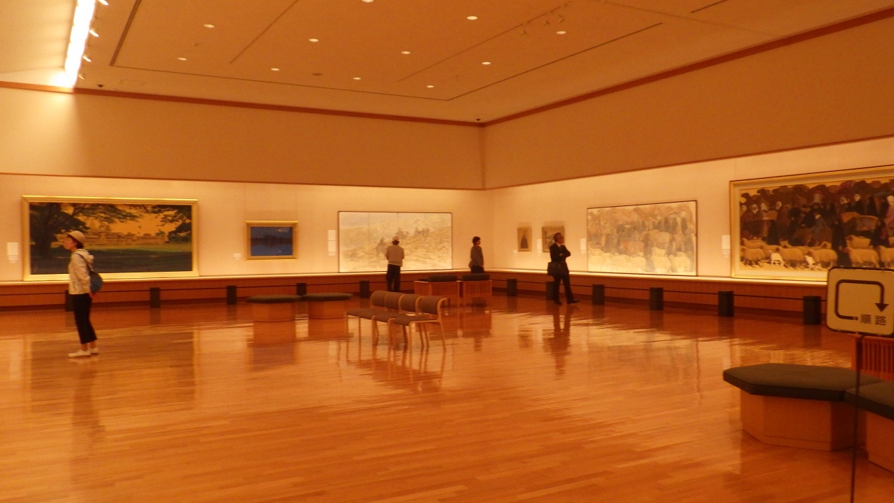 しまなみ海道を尾道から今治まで、自転車で毎年走っていますが、生口島はただの通過地でしたが、今年は観光したくて一泊し瀬戸田地区を散策しました。平山郁夫美術館に入ります。門をくぐり手入れの行き届いた長いお庭を通り館内へ。少年時代の絵画から、しまなみ海道の絵画そしてシルクロードの大作まで3ブースに展示され、美術館では珍しく写真可でした。