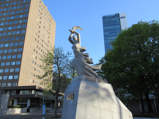 公共施設のホールや図書館、アートセンターなど市民交流複合施設など整備された中央区北1条西1丁目にはカナモトホール(札幌市民ホール)があって、ここの前には山内壮夫の作品の「希望」の像があります。屋外空間にある像は絵画と違った躍動感にあふれ芸術と自然の調和され作家の優しさが感じられる作品でした。以前雪に覆われていて探し当てるのに時間がかかったことがありますが、雪解けとともに素晴らしい作品が多くの人に触れ印象に残るのは良いですね。