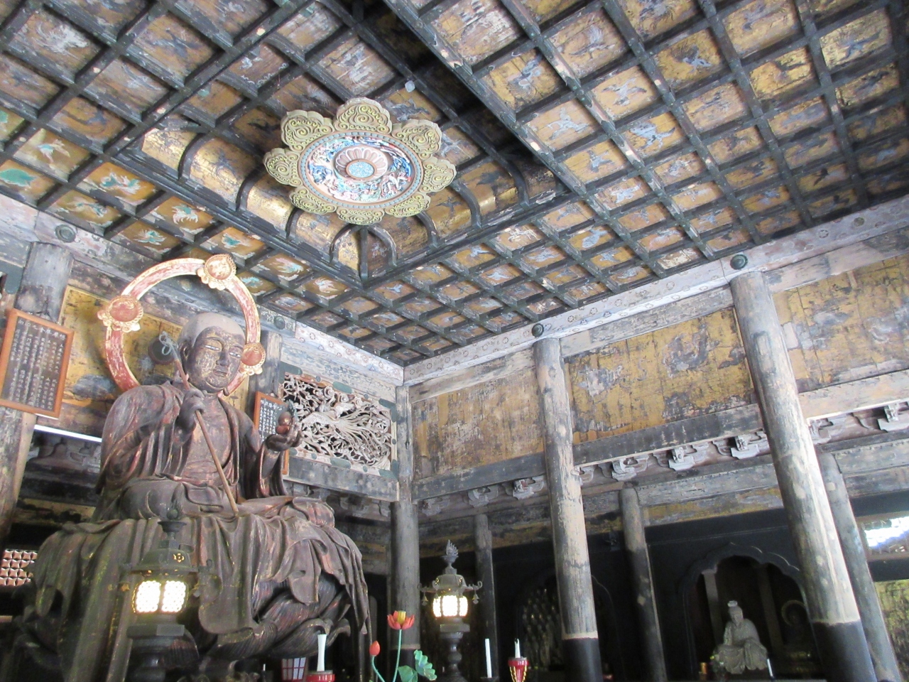 三門の先に建つ、本尊である地蔵菩薩坐像が安置された建物で、法要を行う大きなお堂です。東京の芝・増上寺にあった徳川秀忠夫人の霊屋を移築したそうで、本尊を含め、天井に描かれた鳥の絵や壁に描かれた絵画など、古びていて剥げかけているところに歴史が感じられました。御本尊を容易に見ることができない寺が多い中、いつでも拝むことができる建長寺の姿勢に、多くの人に参拝してもらおうとする建長寺の気持ちが表れているように感じられました。
