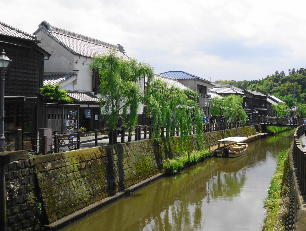 川の流れ、柳の木、趣のある橋、商家や町屋や土蔵、一服の美しい絵を見ているようです。