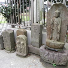 神社の裏手に周辺から集めたと思われる庚申塔や双体道祖神などが1か所にまとめられています。