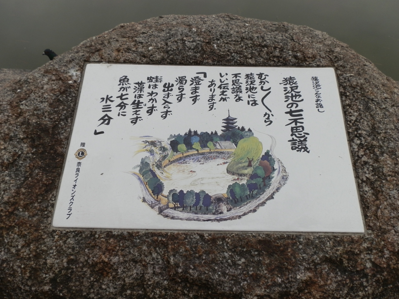 猿沢池は、興福寺五重塔が水面に映える風景はとても美しく、南都八景のひとつとなっている、名勝地です。田中町バス停から歩き始め、ならまちを北上して来たら猿沢池に出ました。見事な美しい自然の池と想像して来ました。猿沢池全体を見渡すとその造りは人工池である。周囲360mの天平21年(749年)にため池の目的で造られた池です。