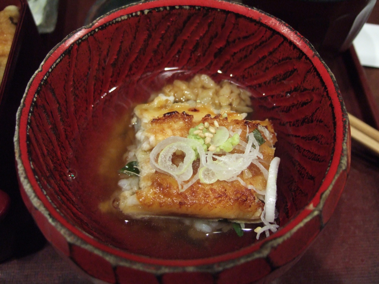 まずは、う巻きではなく、あ巻きで立山純米を飲みながら、穴子の焼き上がりを待ちます。穴子が乗った箱めしは、中箱以上にすると、煮上げと焼き上げの両方を味わうことができます。まずは普通に味わい、ひつまぶしのように次は薬味を乗せ、最後は出汁をかけて3度楽しめます。名古屋のひつまぶしよりはるかに美味しかったです。穴子ちらしも見た目にも美しく、美味しいです。