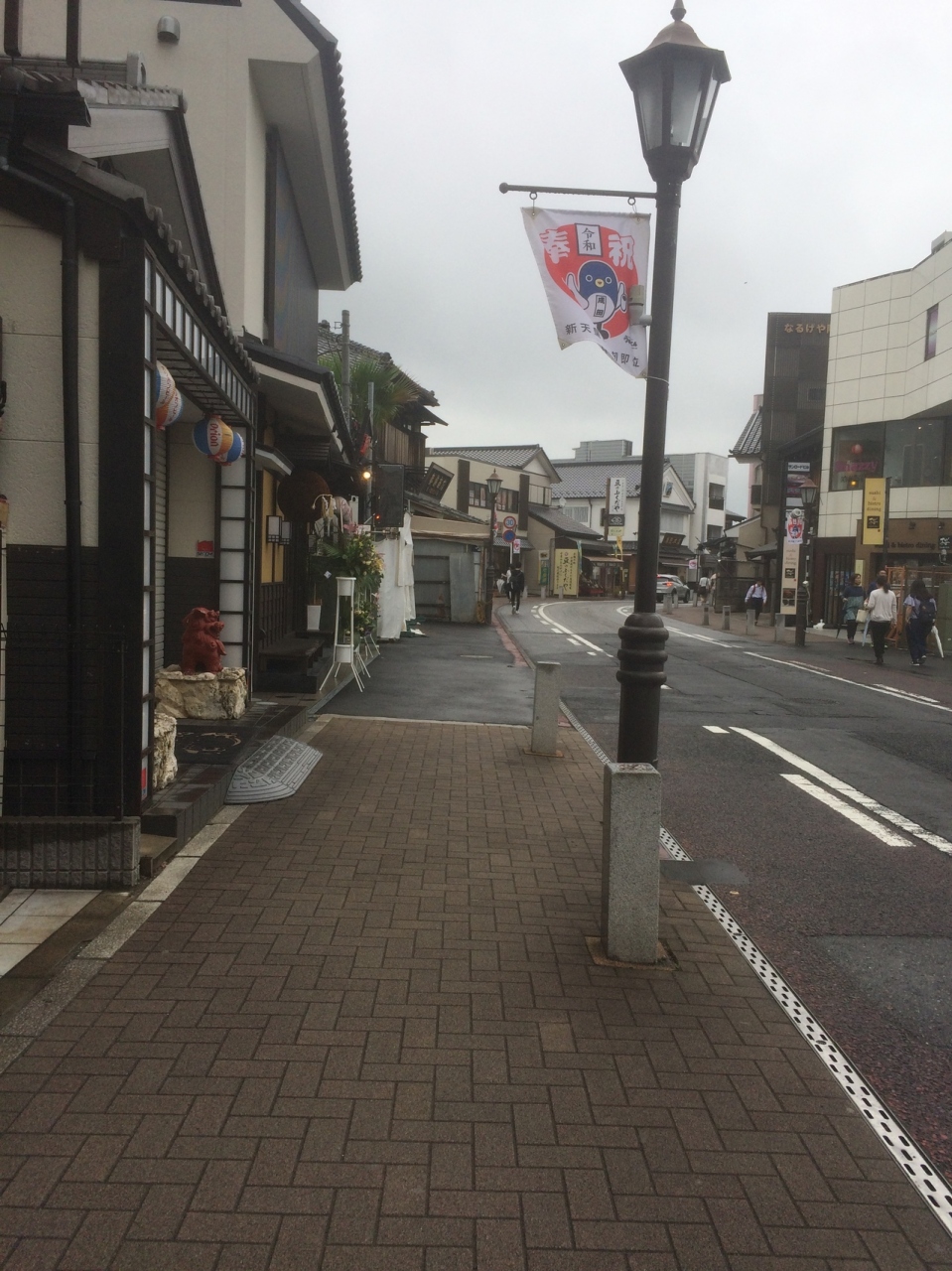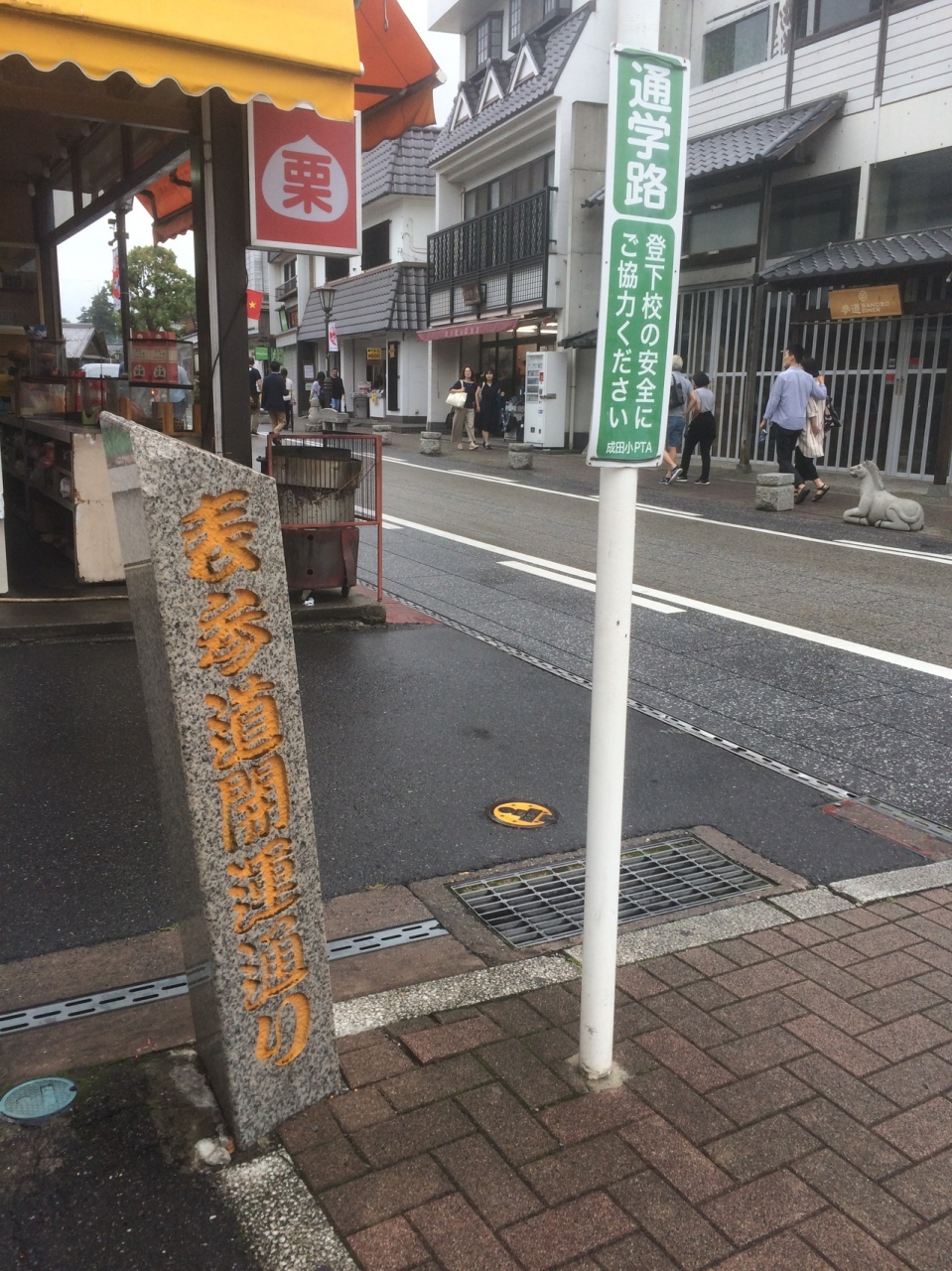 JR成田駅ロータリー前から新勝寺総門まで続き、新勝寺に近い程賑やかで鰻屋、せんべい屋堂があり呼び込みもしていて良い雰囲気。新勝寺近くは坂道になっていて少ないですが車も通ります。せんべいは食べ歩きもある出来、鰻の焼いている雰囲気も良かったです。