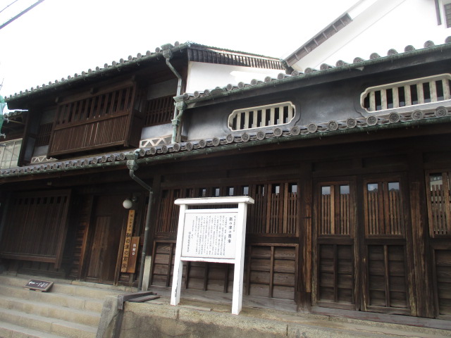福山市の重要文化財です。母屋・土蔵とも江戸末期の商家で、その後、明治27年設立の「鞆製網合資会社」の建物となりました。鞆の浦の特徴である白壁とこげ茶の壁を有するとともに虫窓まである豪華版です。鞆の浦で1番の必見建物です。