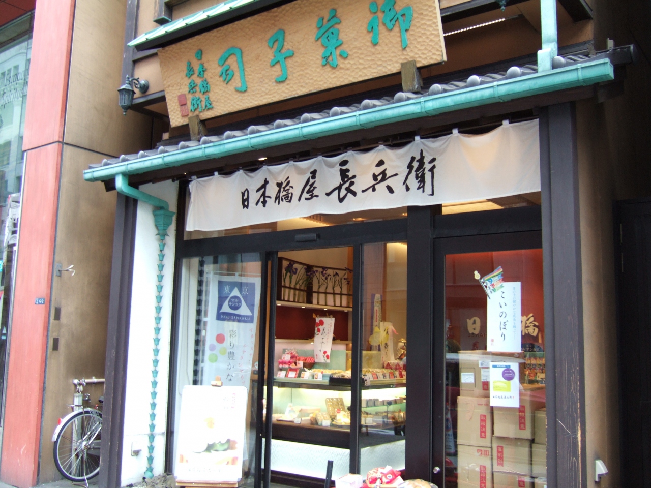 コレド室町から日本橋へ行く途中にあります。羽田空港や駅ビルなどにも入っている和菓子屋さんの本店です。
