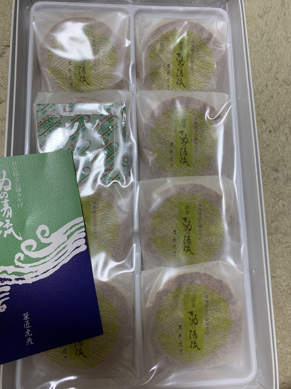 鬼怒川日光のお土産にこちらのお菓子をいただきました。きぬの清流というお菓子です。8個入りだったので家族で食べるのにちょうどよい量でした。和菓子ですが、洋菓子のような要素もありとてもおいしいお菓子でした。自分が日光に行ったらまた買いたいと思いました。