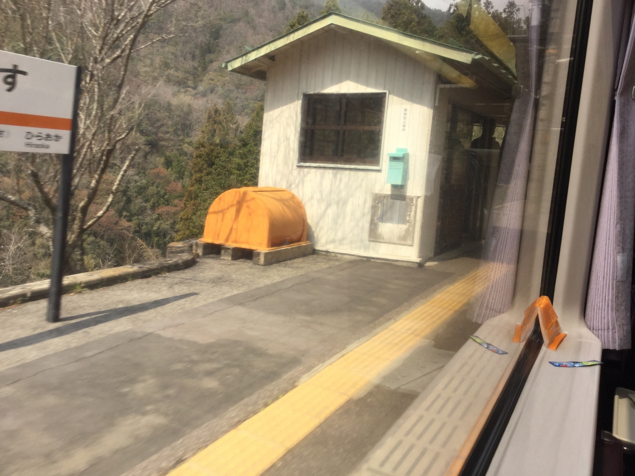 トンネルを抜けると開けた町がある平岡駅に30分停まります。