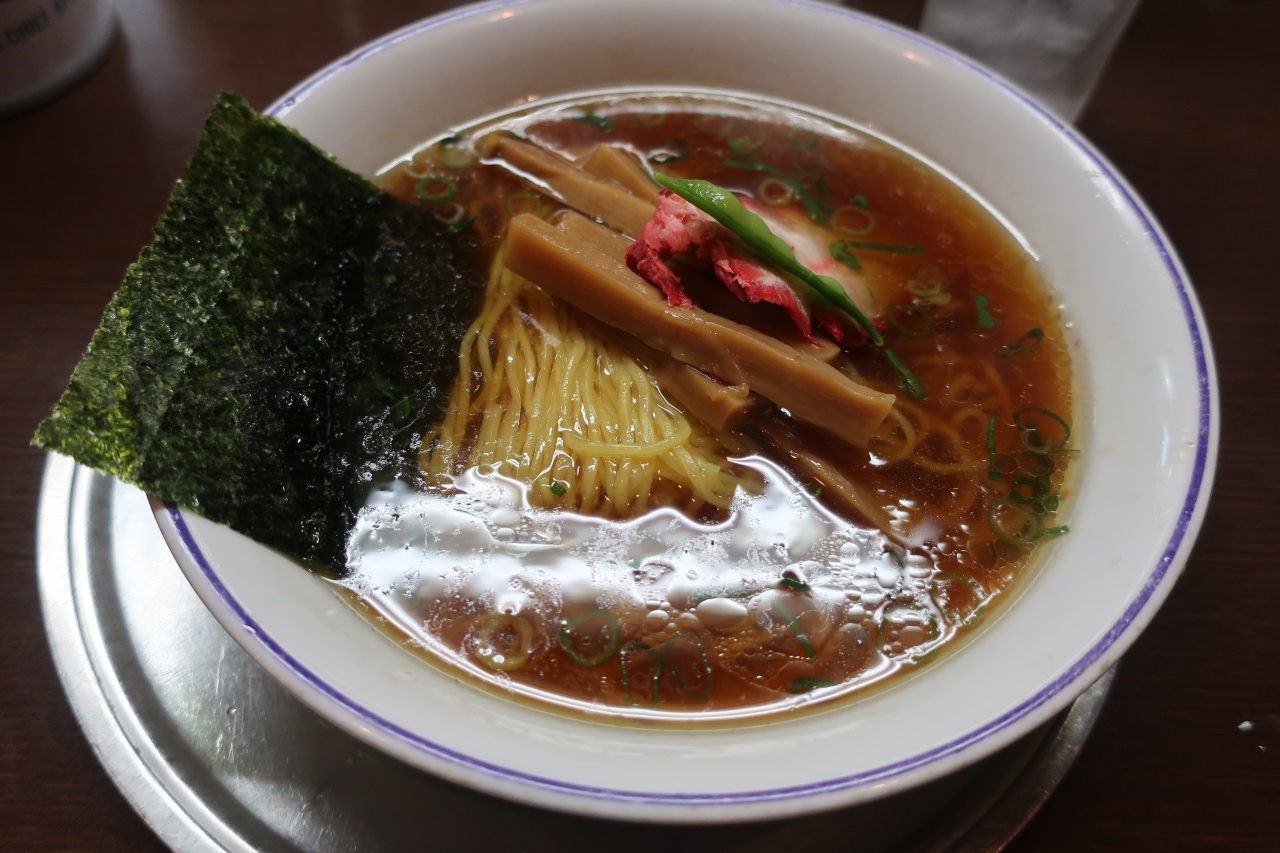 日本橋の老舗洋食店のたいめいけんには何とラーメンコーナーがあります。たいめいけん正面の右手の道沿いにサッシ戸の入口で4人程が入れる程の場所。椅子はなく立ち食いスタイルのカウンターで、奥のたいめいけん厨房が良くみえます。メニューはラーメン、カレー等があります。頂いたのはラーメン750円。洋食屋のラーメンとはかなる物かと思いましたが、見た目は至って普通、味は濃いめの醤油味のスープで、私の評価としては中のちょっと上と言う位の味でした。たいめいけんのラーメンを食べると言う話題性はある店です。