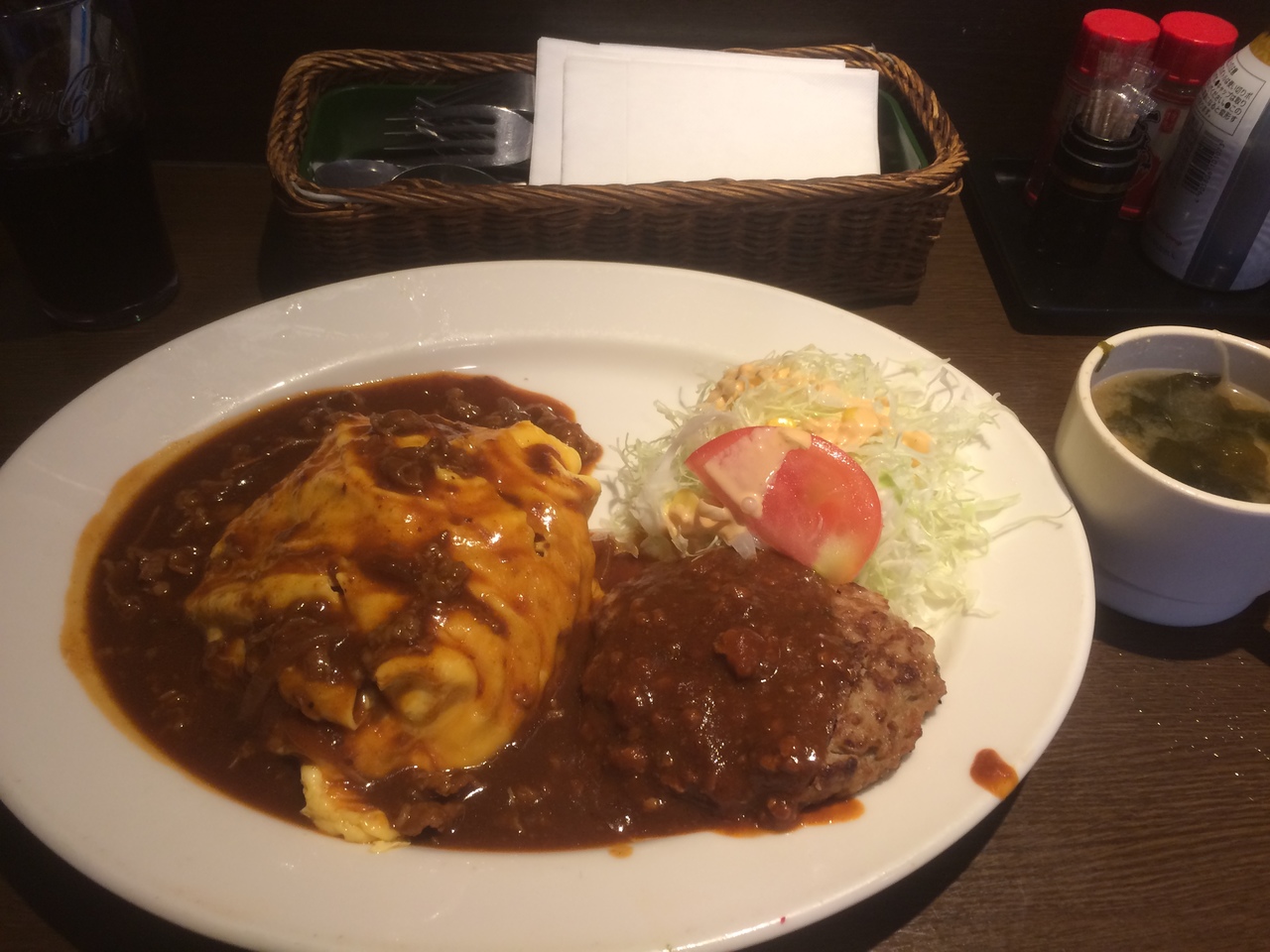 昼食時はドリンバーが付いているので入りました。東京駅のガード下にある店舗で電車の音は気にならなかったです。ハンバーグとかオムライスを食べました。ハンバーグは工場から運ばれてくるような味で今ひとつので味、オムライスはソースがけたっぷりかかりなかなかの味でした。