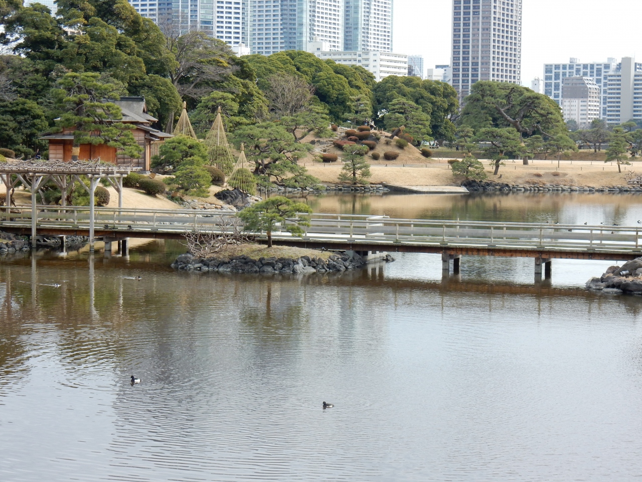 この庭園に造られた池の一つである(そのうち一番大きなものと思われるところである)といえるのが「潮入の池」であり、ここは「江戸時代から続く庭園では、都内唯一の海水の池」とされている。