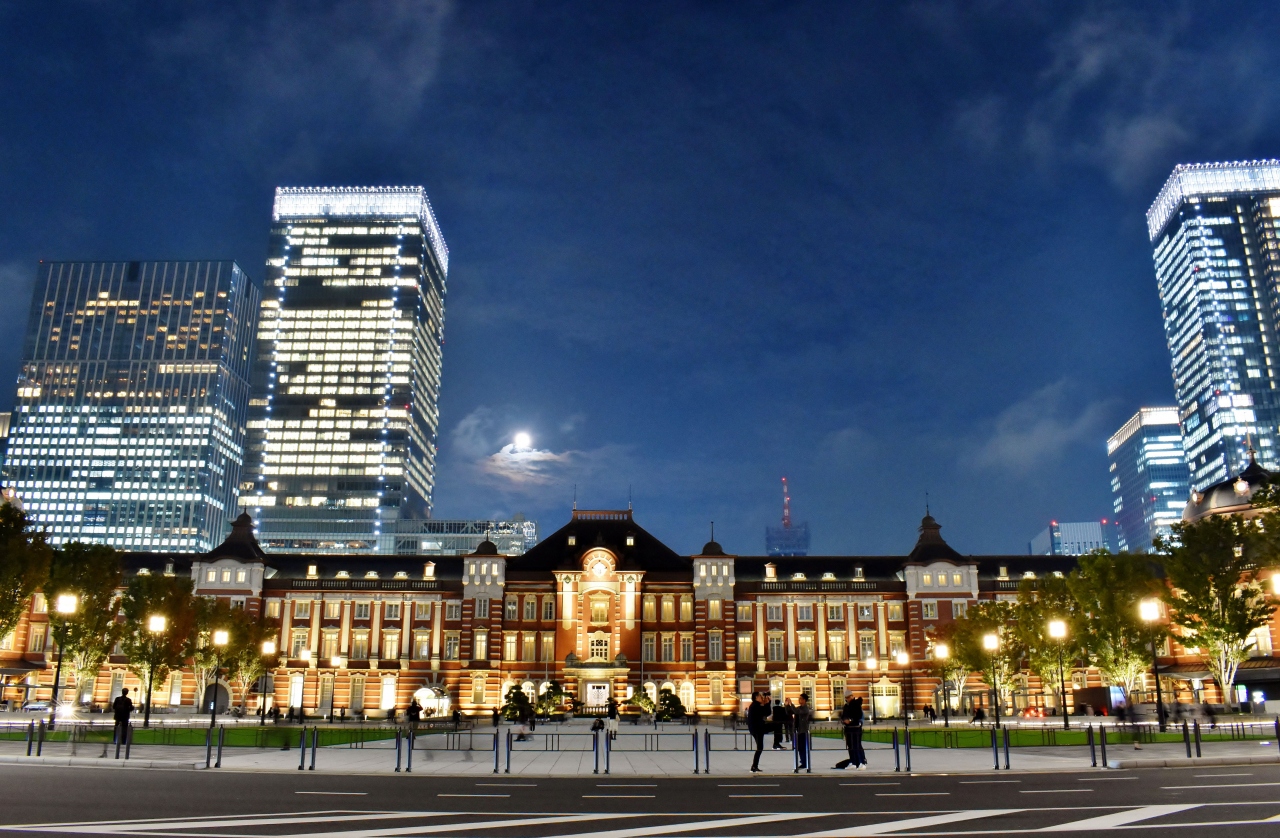 駅全体の写真を撮るには、駅前通りを挟んだ反対側の公園から、または丸ビルのテラスから撮るのが吉かと思います。