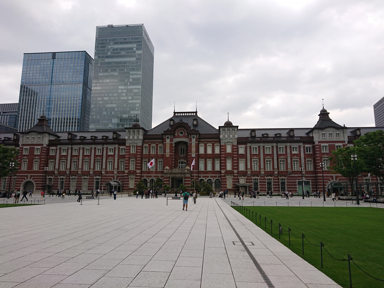どこまでが駅前広場で、どこからが皇居なのかよくわからないところはありますが、開放感があり気持ちの良い場所で多くの外国人が、東京駅の赤レンガ駅舎をバックに写真を撮っていました。