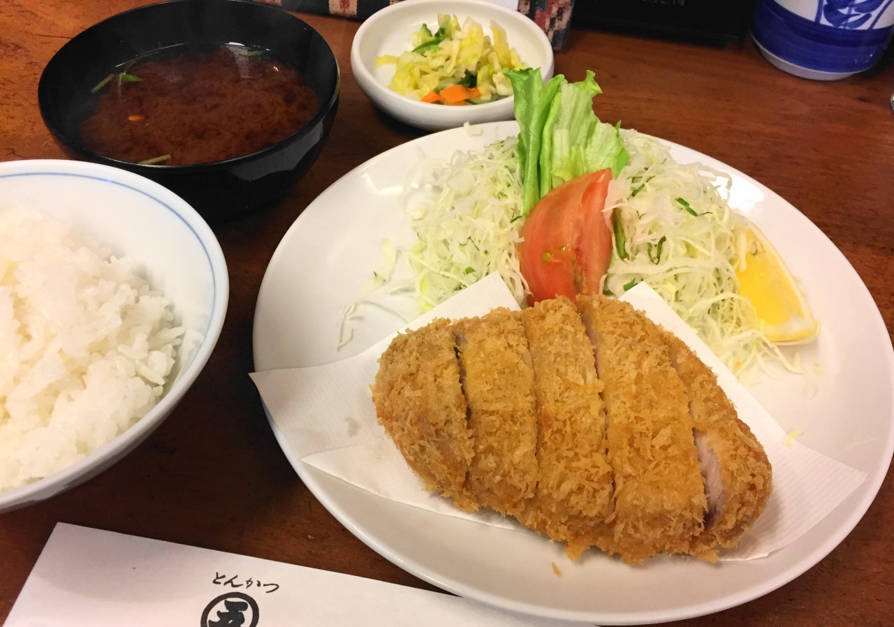 美しく揚がったキツネ色のとんかつ、肉厚ですね。