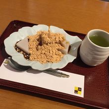 三角に切ってあって、黒蜜・きな粉がかかっています。