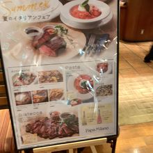 JR、相鉄、東急、横浜市営地下鉄横浜駅から数分の横浜モアーズ8Fレストランフロアthe DININGにあります。イタリア料理で、生パスタとピザがメイン料理でした。ローマピザは薄くパリっとしていました。店奥には個室もあり今度利用したいと思いました。